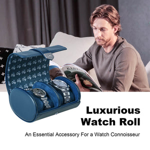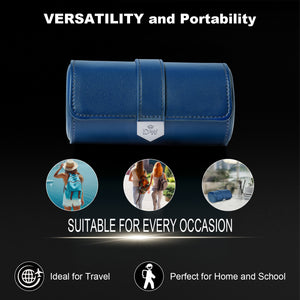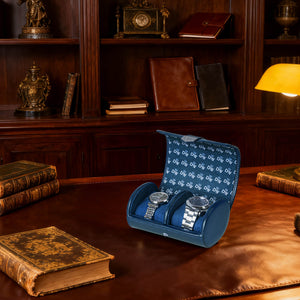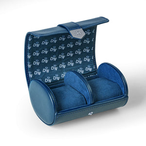 Vegan Leather Double Watch Roll Travel Case - Blue