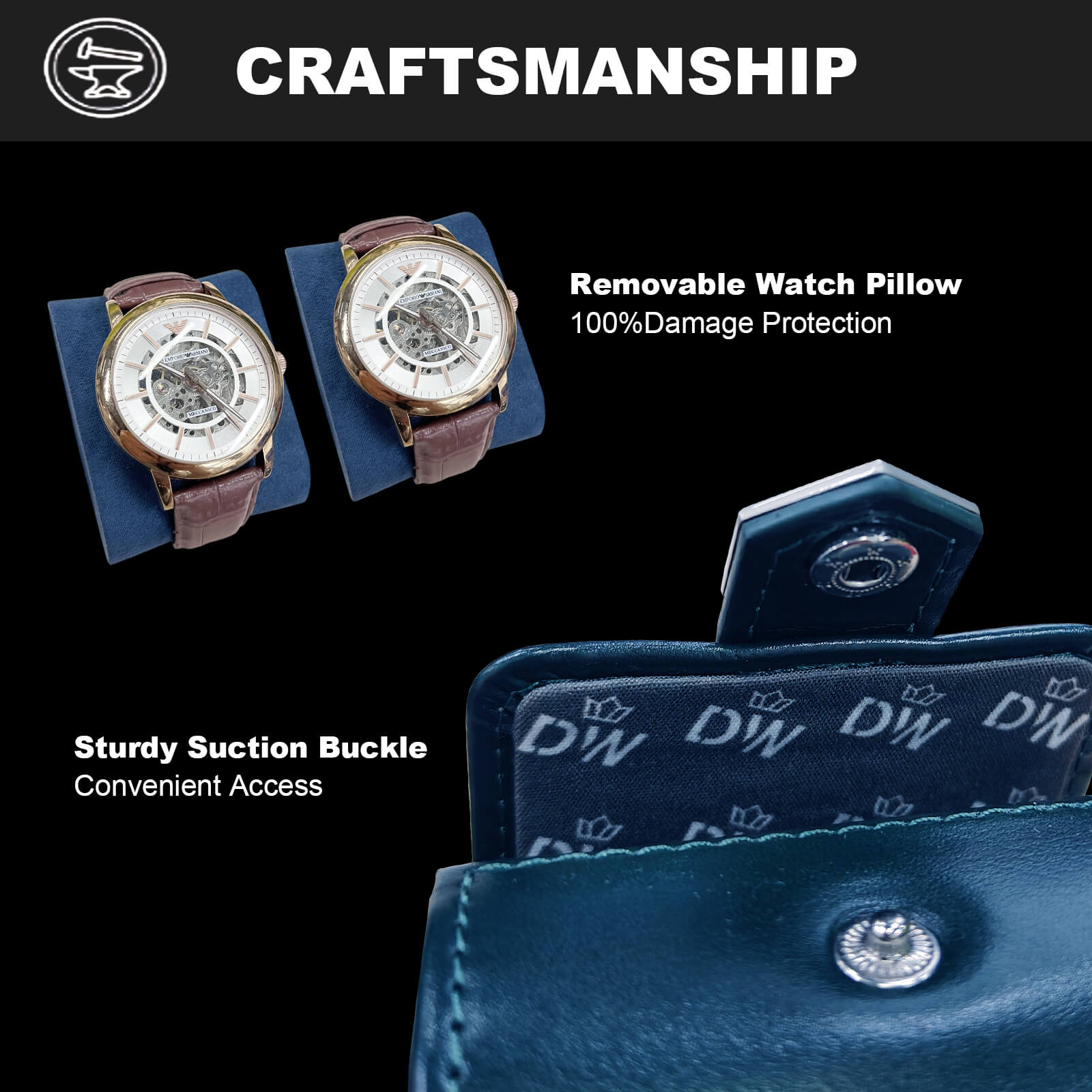 - Can hold watches from WRIST SIZE: ≥ 6 inches (15.24cm)