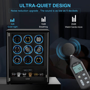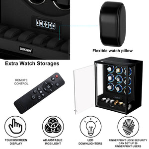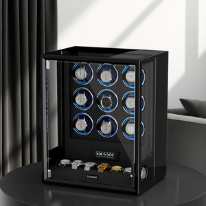 VIRTUOSO – Premium 9 Watch Winder with Fingerprint Lock & Extra Storage - Black