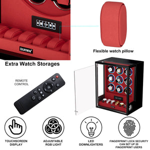 VIRTUOSO – Premium 9 Watch Winder with Fingerprint Lock & Extra Storage - Red