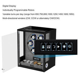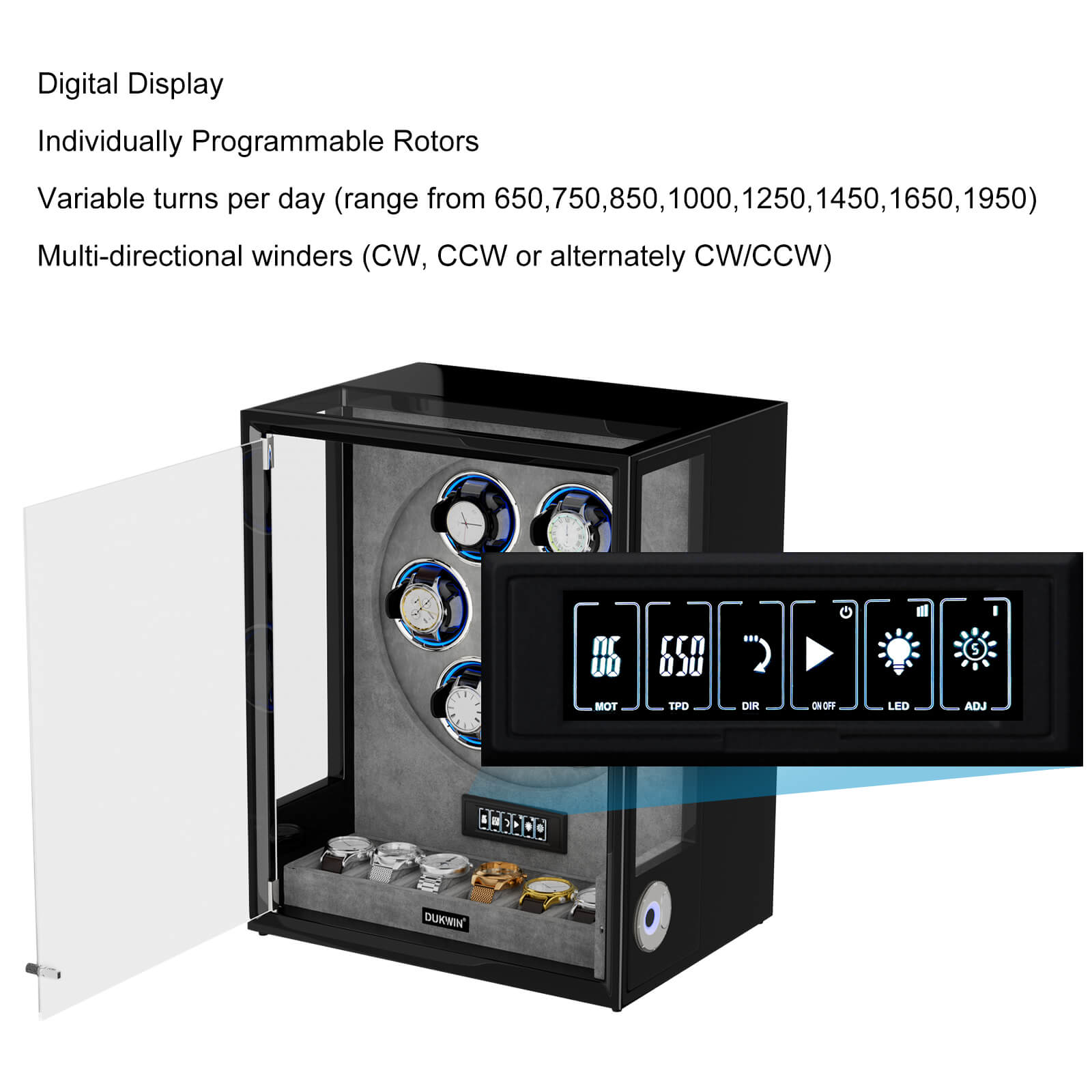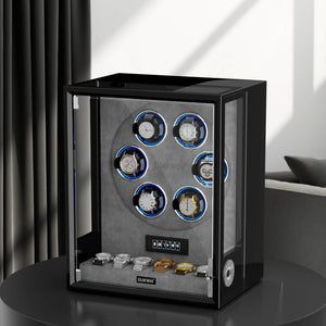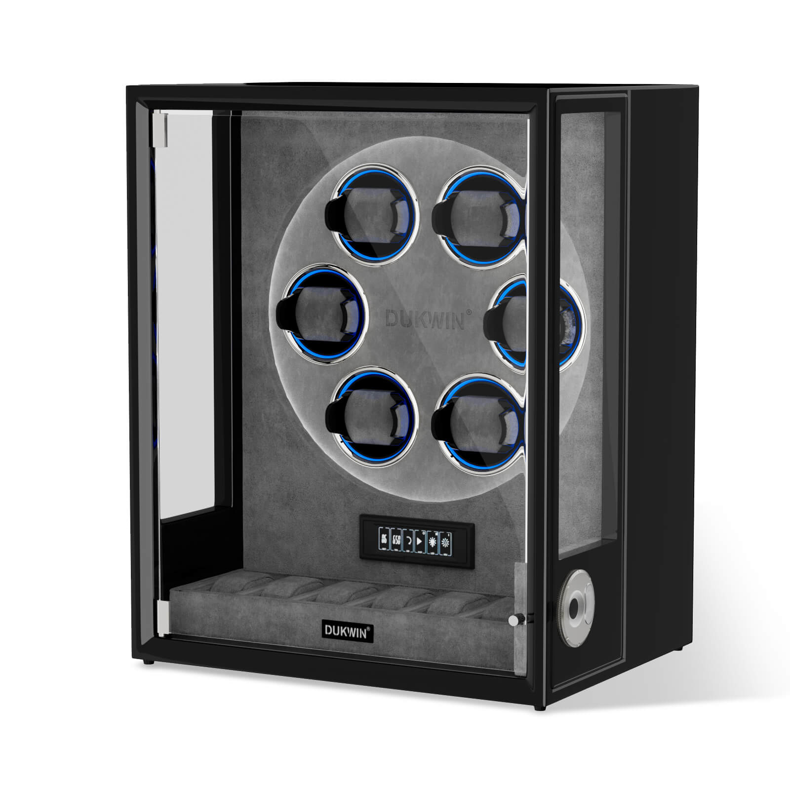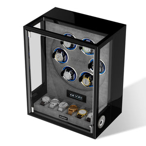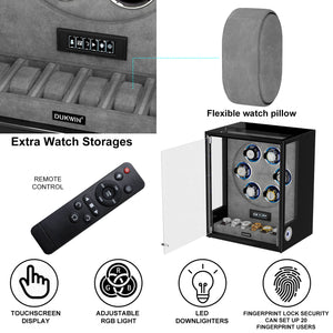 VIRTUOSO – Premium 6 Watch Winder with Fingerprint Lock & Extra Storage - Grey