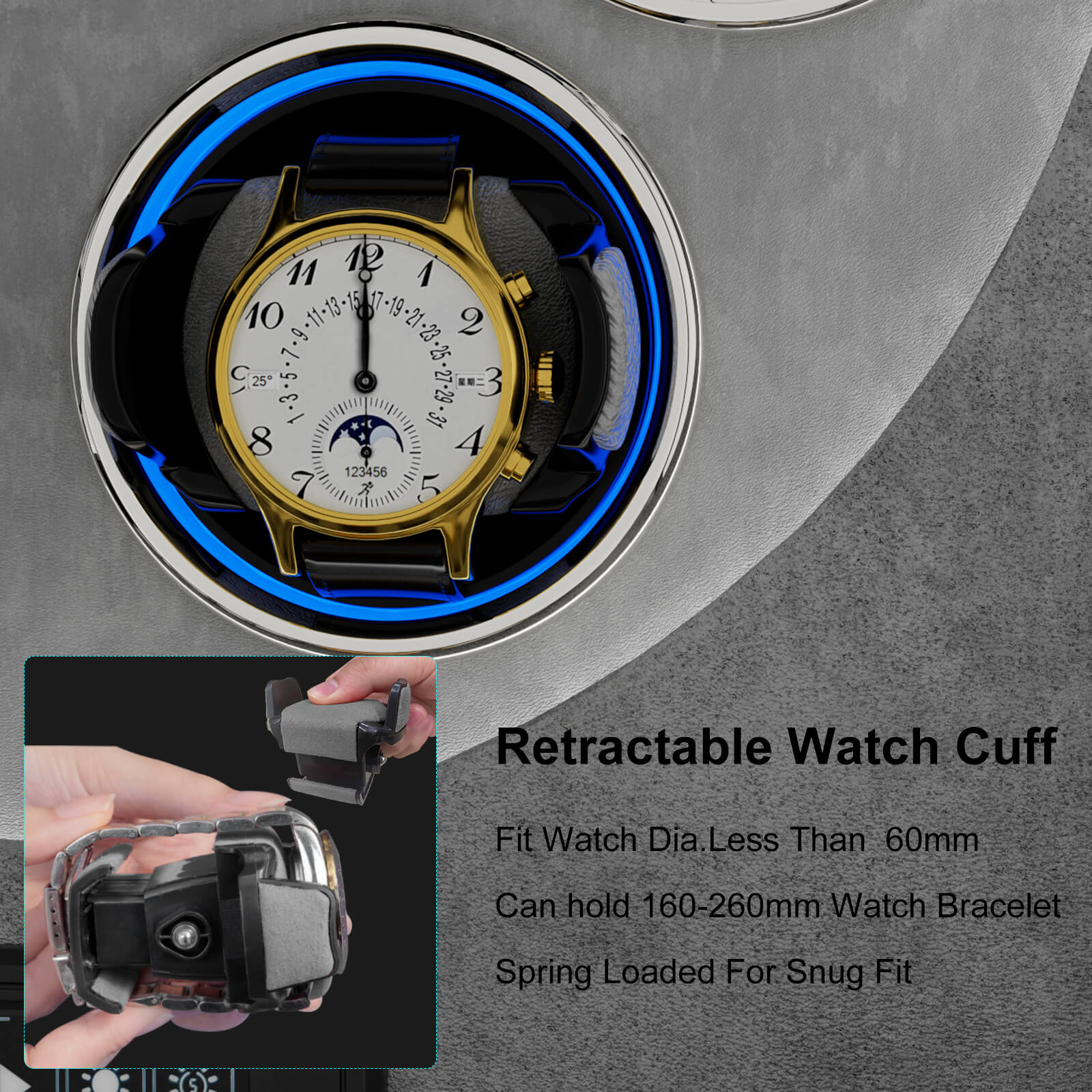 Lock-in Dynamic Cuff: Patented lock-in dynamic cuff ‘locks’ your timepiece into the rotator drum for a secure fit. Accommodate most wrist sizes without putting pressure on your bracelet.