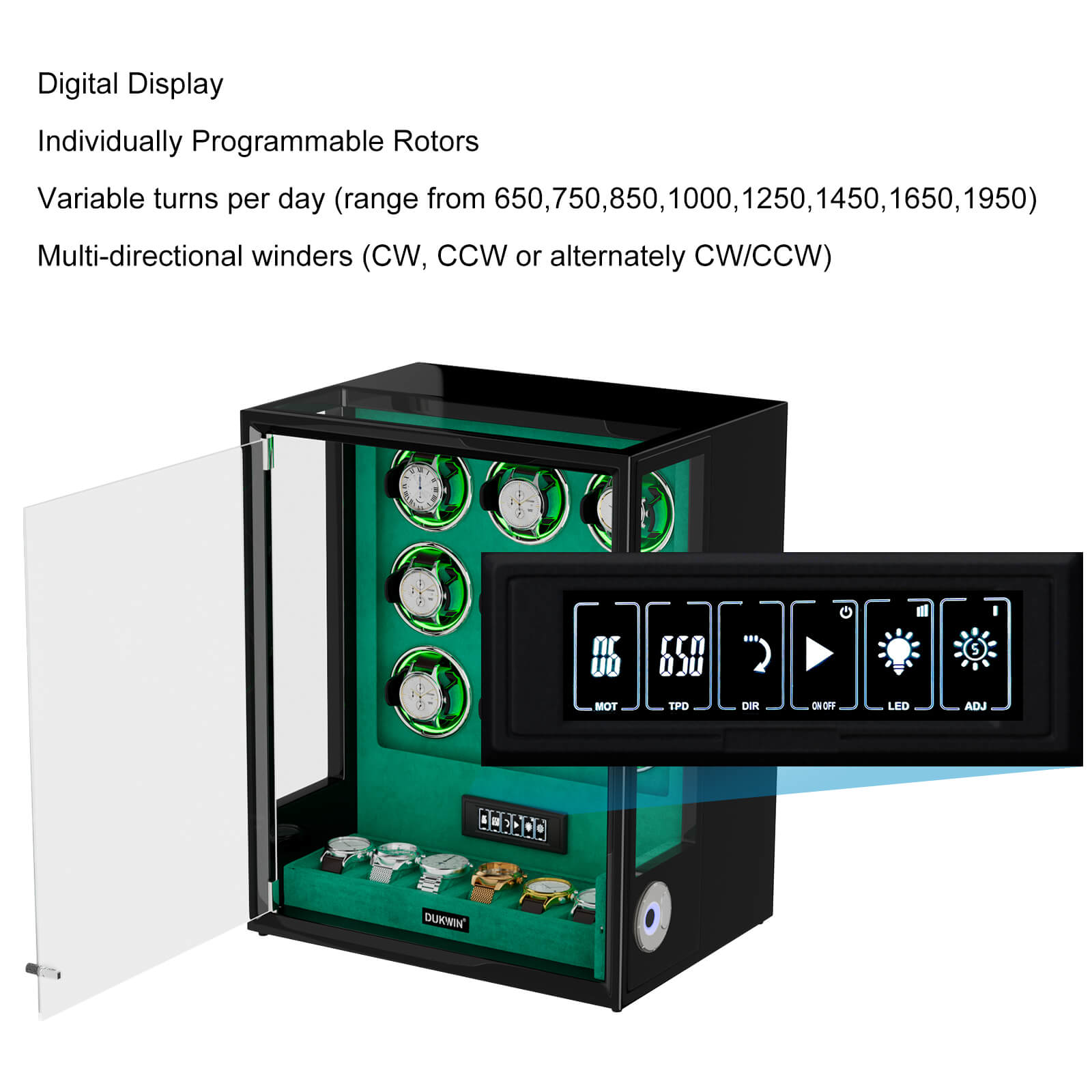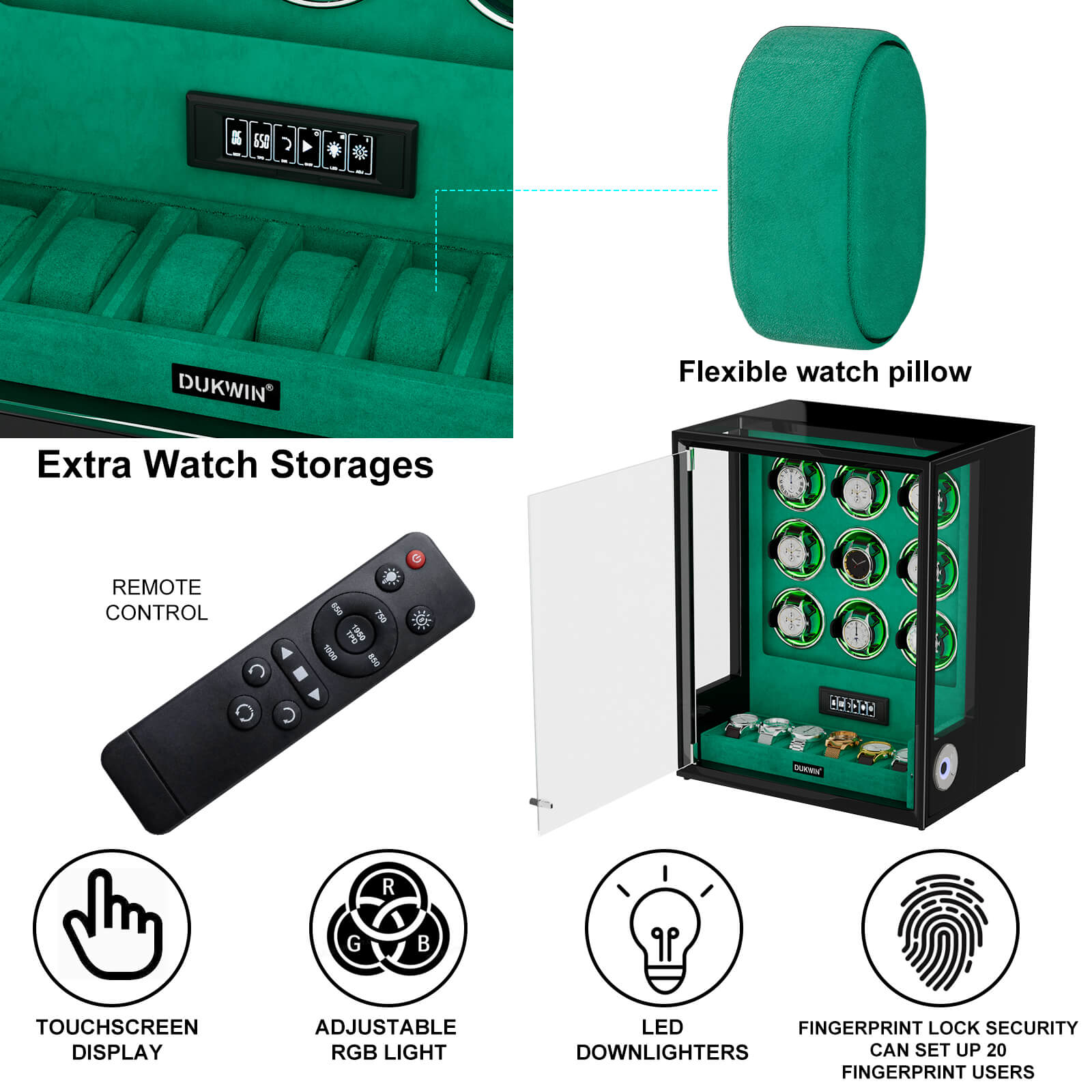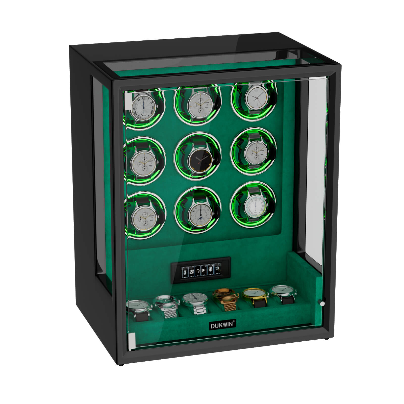 VIRTUOSO – Premium 9 Watch Winder with Fingerprint Lock & Extra Storage - Green