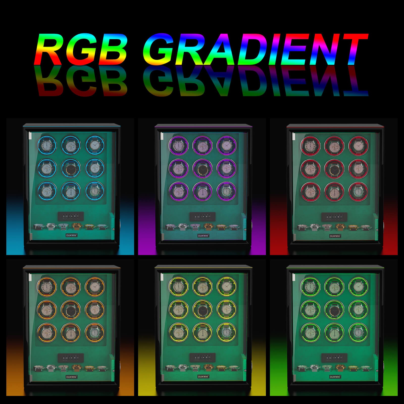 Patented Innovation: The VIRTUOSO watch winder for 9 watches impresses with the latest technology and outstanding workmanship, ensuring that each individual watch winder meets the highest standards, the selected solid wood is finished with the utmost care and refined craftsmanship with an exquisite piano lacquer and tempered glass door.
