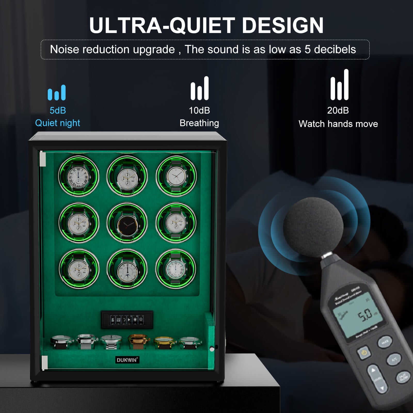 Large Capacity: 9 winding modules, 6 watches organizer storage, with ample space for your watch collection, you can showcase and enjoy your watches without worrying about storage.