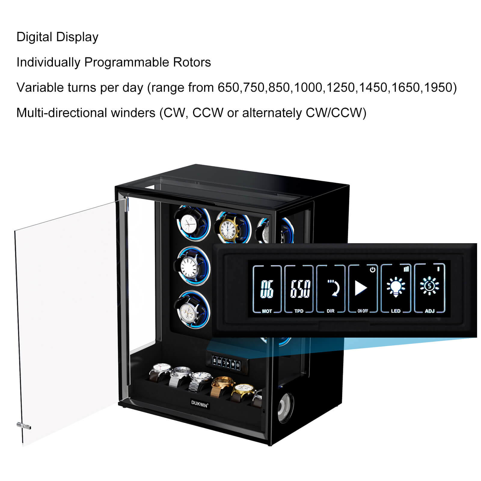 Large Capacity: 6/9 winding modules, 6 watches organizer storage, with ample space for your watch collection, you can showcase and enjoy your watches without worrying about storage.