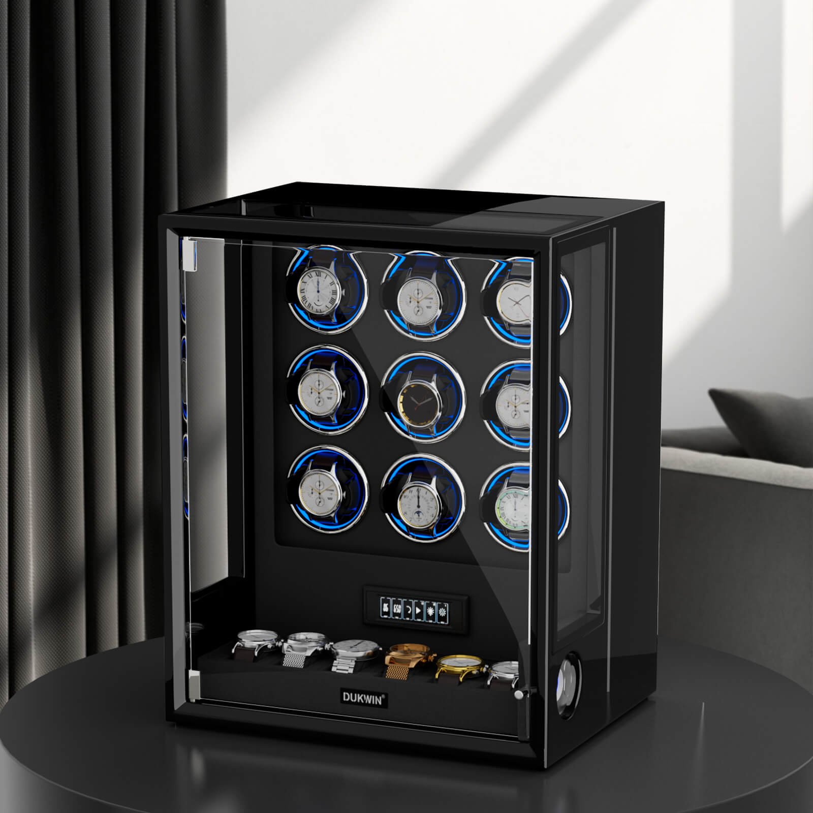 Watch Winder with Fingerprint Unlock RGB Lighting One-of-a-kind Patented Design